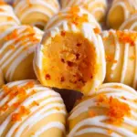 Deliciously irresistible orange-flavored truffles made with cream cheese and coated in candy melts and white almond bark.