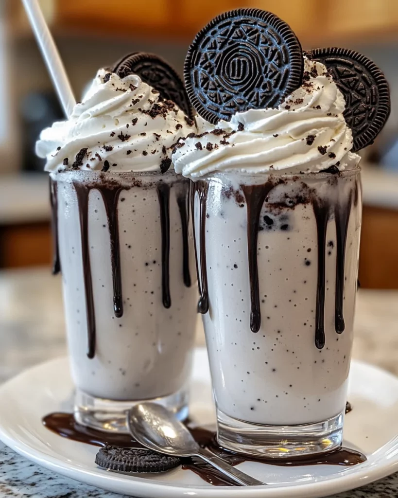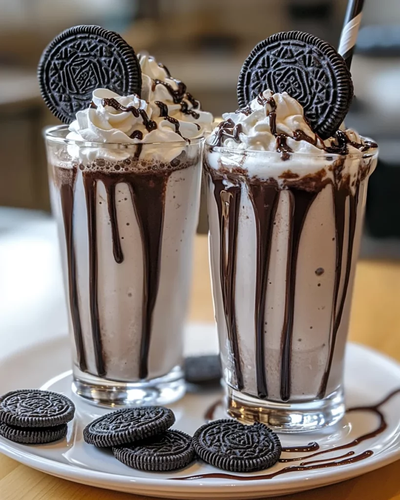 A delicious and creamy Oreo milkshake that combines the classic flavor of Oreo cookies with vanilla ice cream and milk.