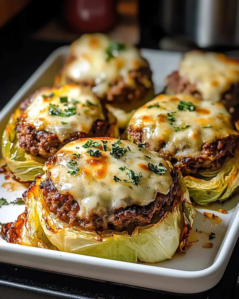 Place your assembled cabbage burgers in the oven and bake for 25 minutes. After that, it’s time for the magic touch! Take them out and sprinkle your shredded cheese on top. Now, broil them for 3-5 minutes until the cheese is melted and bubbling. Keep a close eye during this step to avoid burning; we want that lovely golden finish!