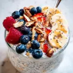 Now comes the fun part—topping your overnight oats! This is where you can get creative. Sprinkle on fresh berries for a burst of flavor and color, or add banana slices for extra sweetness. Chopped nuts lend that satisfying crunch, while a dollop of nut butter brings indulgent richness. Each topping not only adds nutrients but also transforms your oats into a vibrant, beautiful breakfast!
