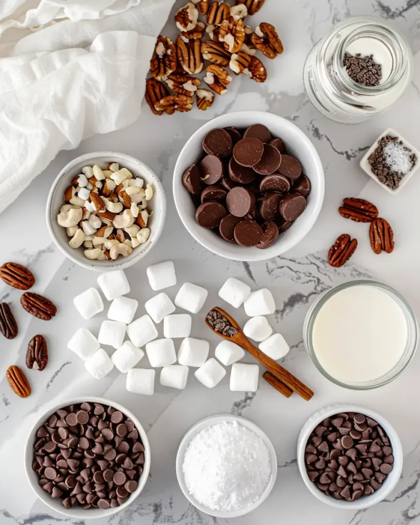 - Mini marshmallows help emulsify the chocolate and stabilize the mixture.