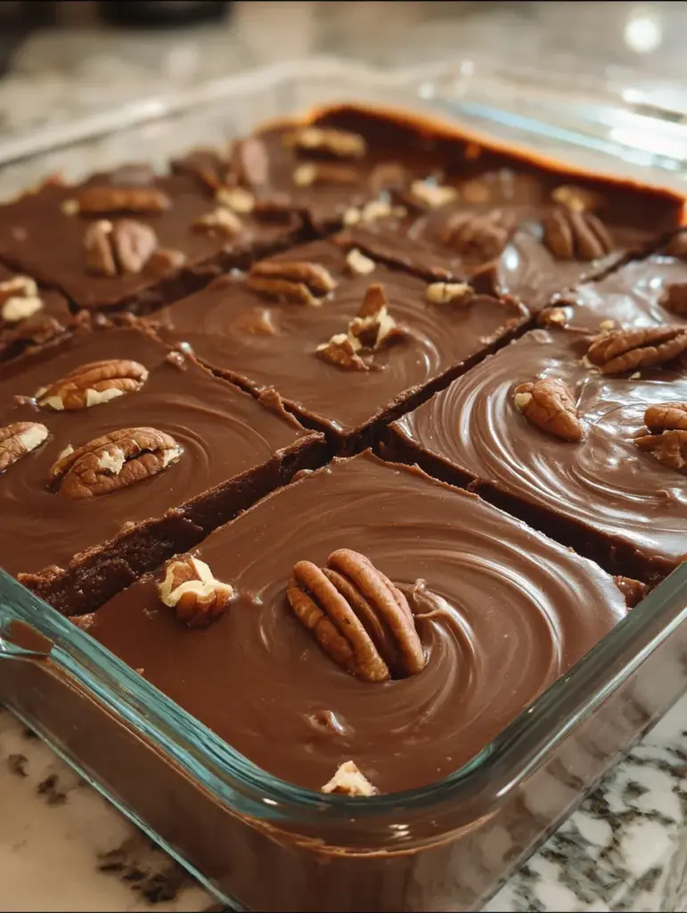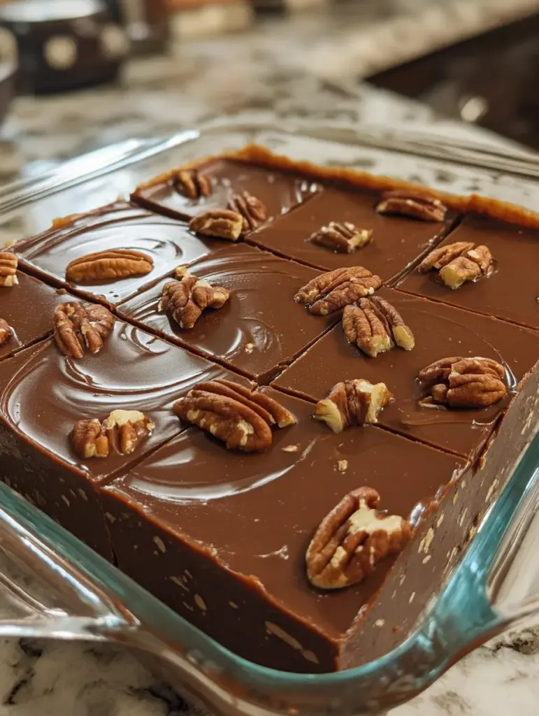 - Even Topping: Gently press the pecan halves on top in a grid-like pattern before it sets. Not only do they make it look professional, but they also hint at the nutty goodness inside.
