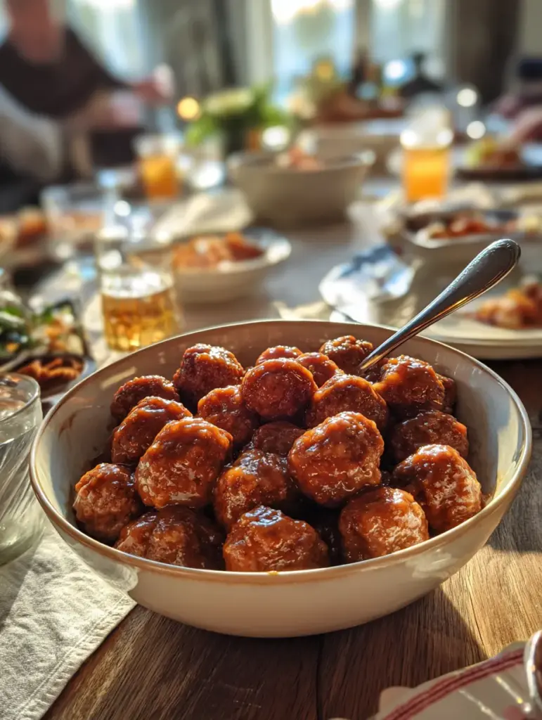 🎉 Peach Bourbon Meatballs: A Festive Crowd-Pleaser