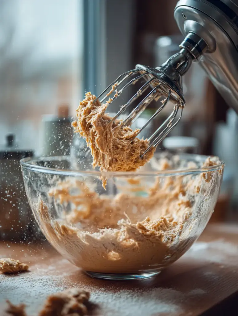 Do this for 2–3 minutes, until it’s light and fluffy. Don’t skimp on time here—this step whips air into the dough and helps create that soft center we’re going for.