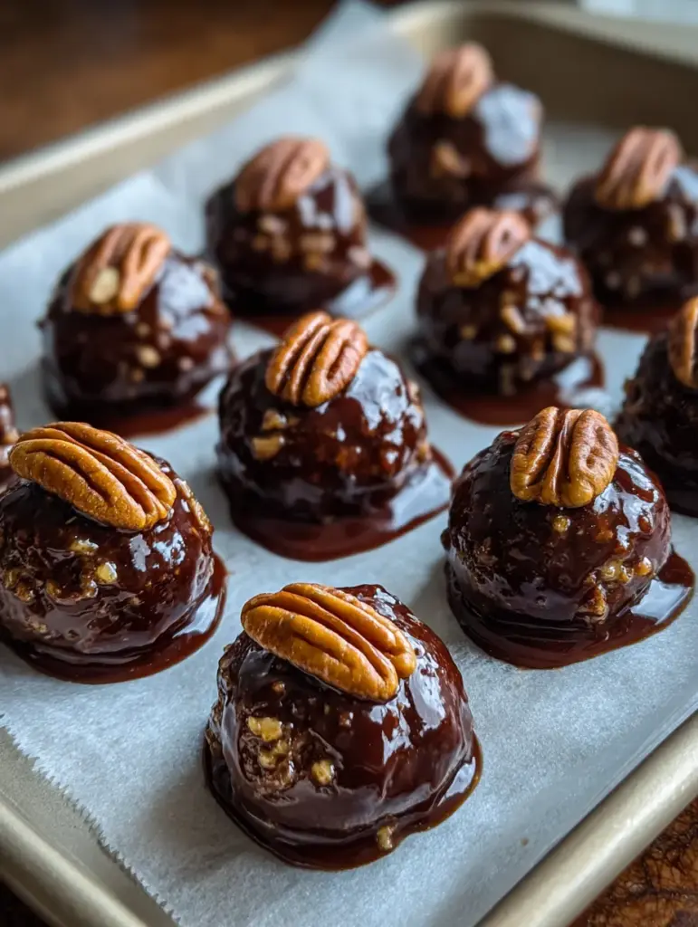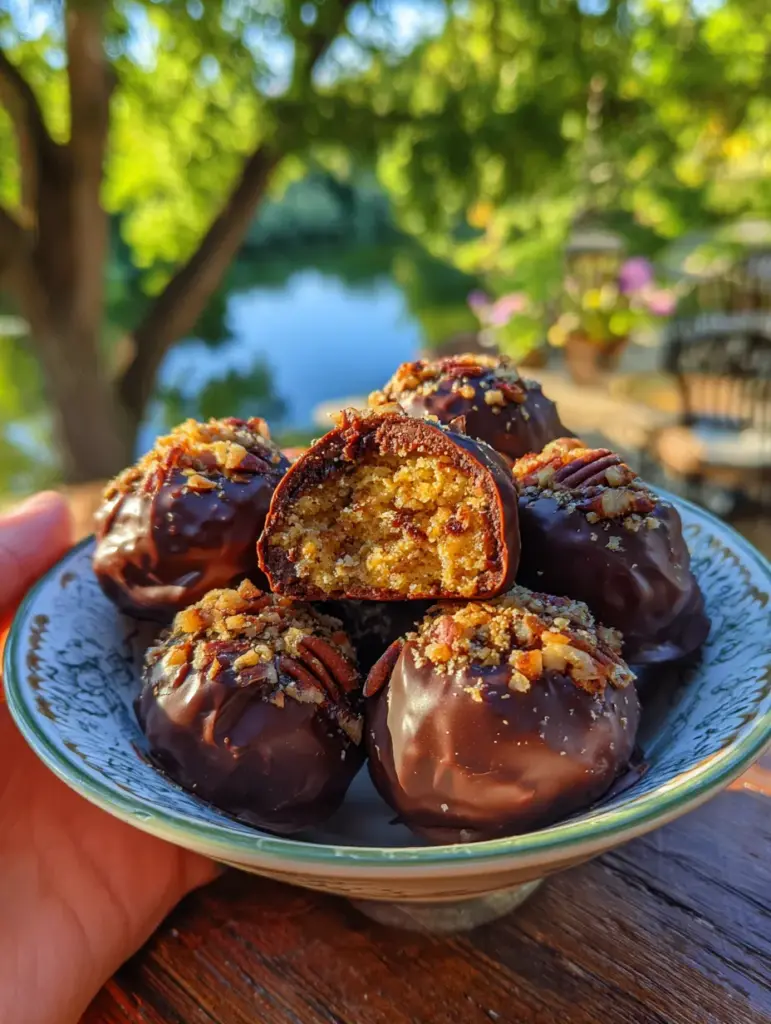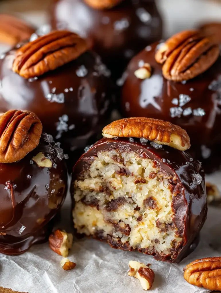 Think of them as the truffle cousin of pecan pie. Each ball is chewy and nutty with pockets of toasted pecan, sweetened with brown sugar and maple syrup (or honey), rounded with vanilla and a pinch of salt, then dipped in glossy chocolate. The contrast of soft, nutty interior and firm, chocolate shell gives a satisfying texture that’s surprisingly close to the real thing. Make a batch for a party and watch them disappear — they’re that addictive.