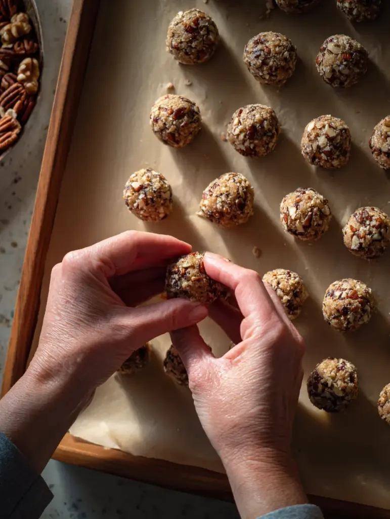 Shape the balls – Roll about 1 tablespoon of the mixture into balls and place them on a parchment-lined tray. (⏱️ 10 minutes)