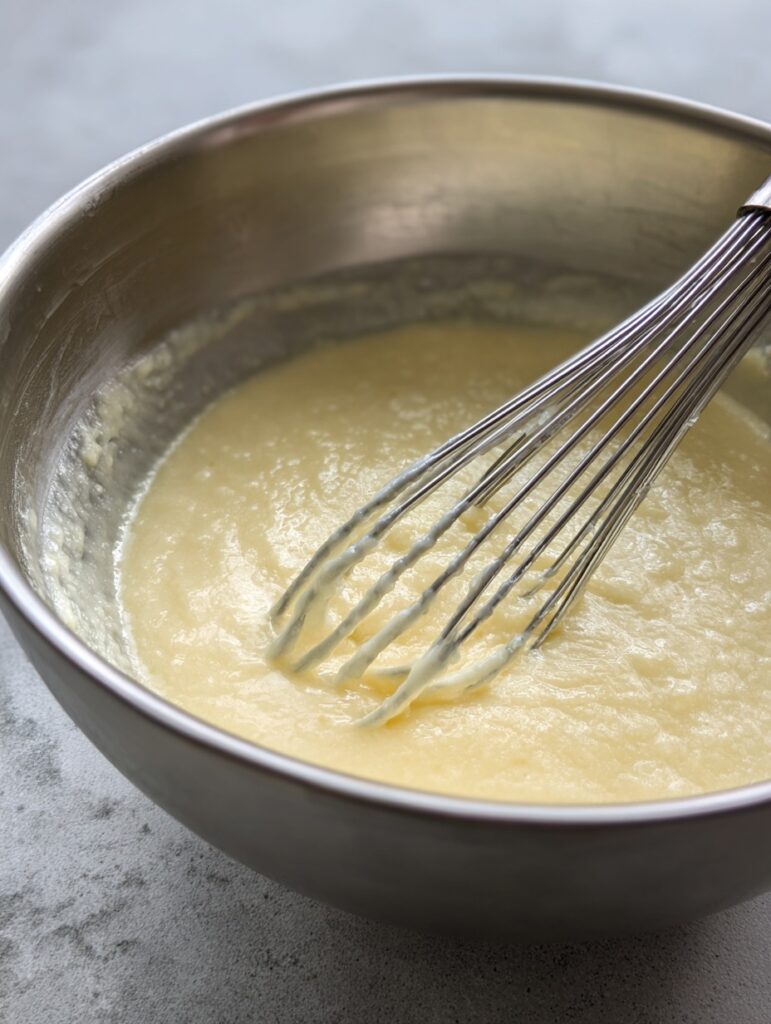⏱️ Duration: 5 minutesPrepare the batter. In a large bowl, whisk together the self-rising flour, granulated sugar, milk, vanilla, and salt until smooth. Pour this mixture over the melted butter — do not stir. 🍶