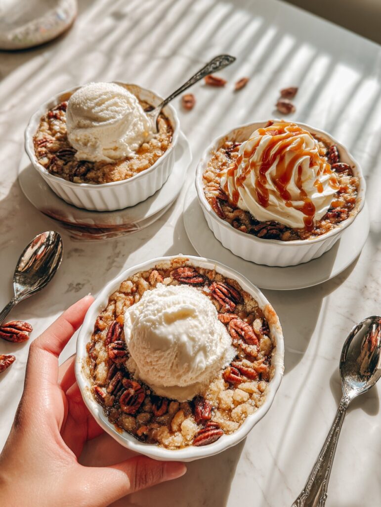 If you prefer something a little lighter, add a dollop of whipped cream instead. The airy sweetness complements the deep caramel flavor of the pecans beautifully, giving the cobbler a touch of elegance.