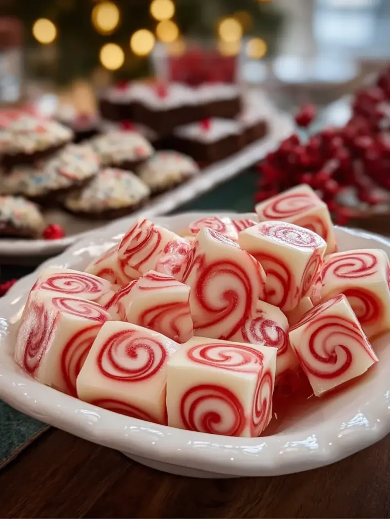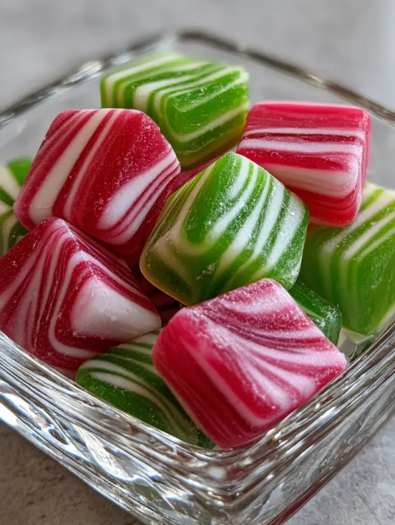 ✨ Festive, glossy, creamy, and beautifully marbled with bright peppermint swirls! These little holiday bites melt on the tongue and make the perfect Christmas candy tray treat — simple, stunning, and absolutely irresistible ❤️🍫
