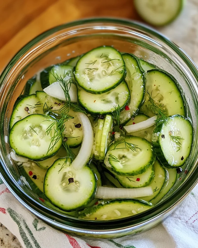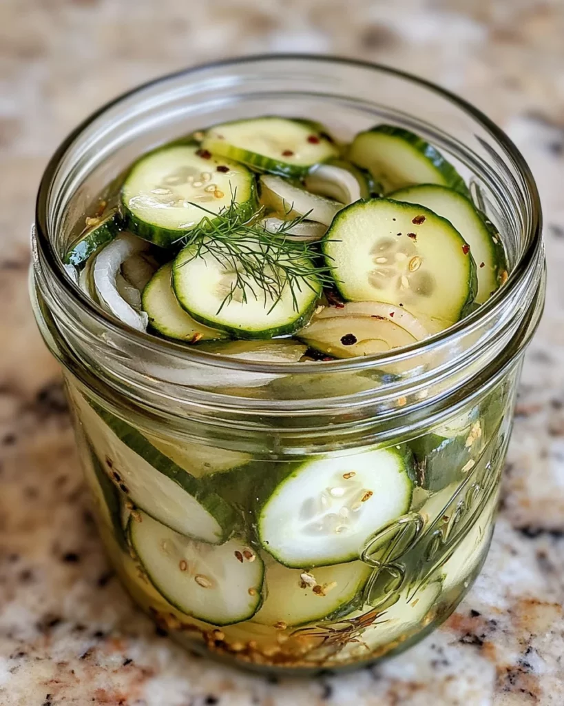 Now comes the fun part: storing your pickled cucumbers and onions! Transfer the cooled mixture to jars or any airtight containers. Seal them up tight and pop them in the refrigerator for at least 4 hours. If you can wait until the next day, do it! Trust me, the flavors deepen and get even tastier overnight. When you’re ready to serve, garnish with fresh dill for that perfect touch of herbal brightness. Enjoy your crunchy creation!