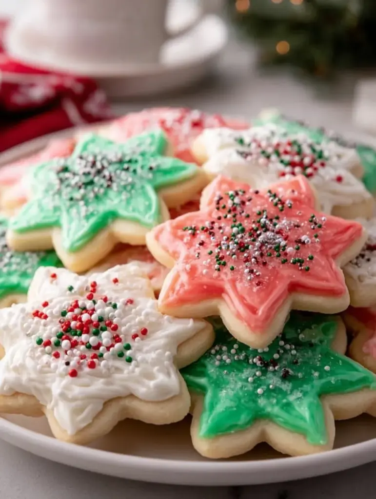 Whether you’re baking for Santa, sharing with friends, or making memories with family in the kitchen, these cookies are the perfect festive treat. And let’s not forget how pretty they look—just like the photo, with pastel icing and cheerful sprinkles in red, green, and white. 🌟