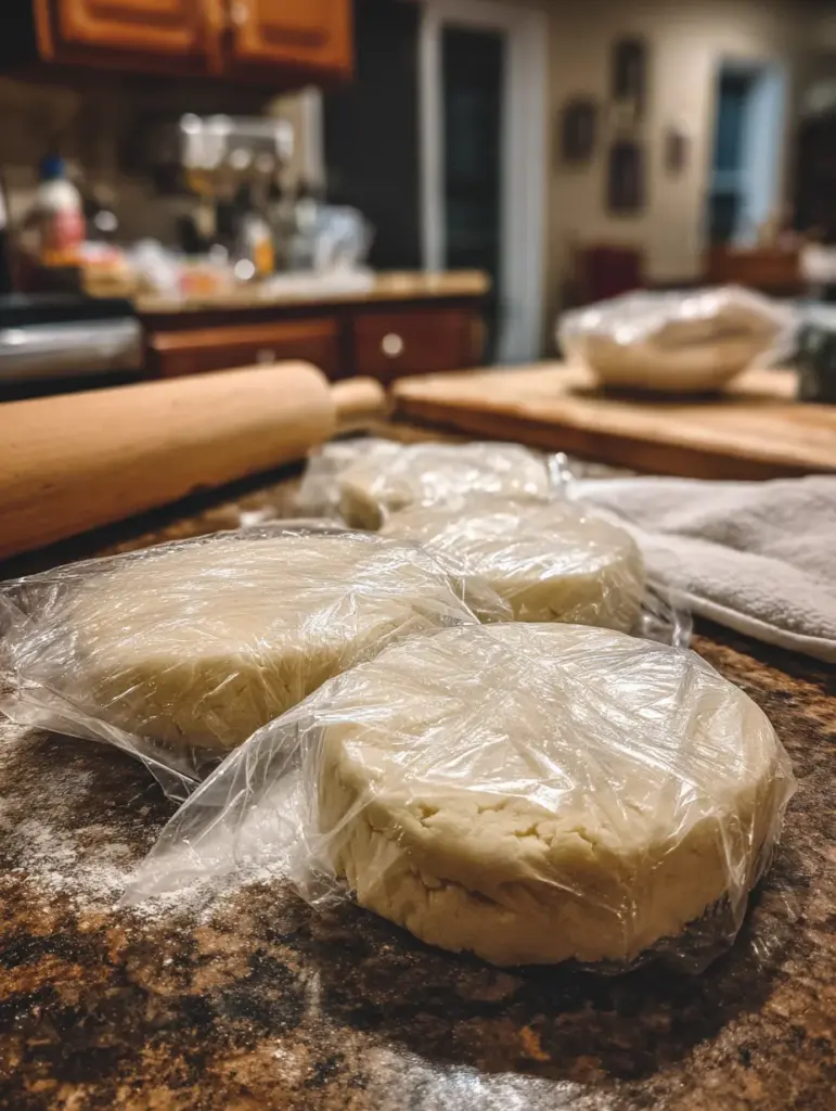 Divide the dough in half, flatten into discs, wrap well, and refrigerate for at least 1 hour to firm up ❄️⏳.