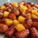 Yes! You can bake these bites in an oven at 350°F for about 30–40 minutes. Use a baking dish, mixing the sausages with the glaze and pineapple chunks. Just keep an eye on them to avoid overcooking!
