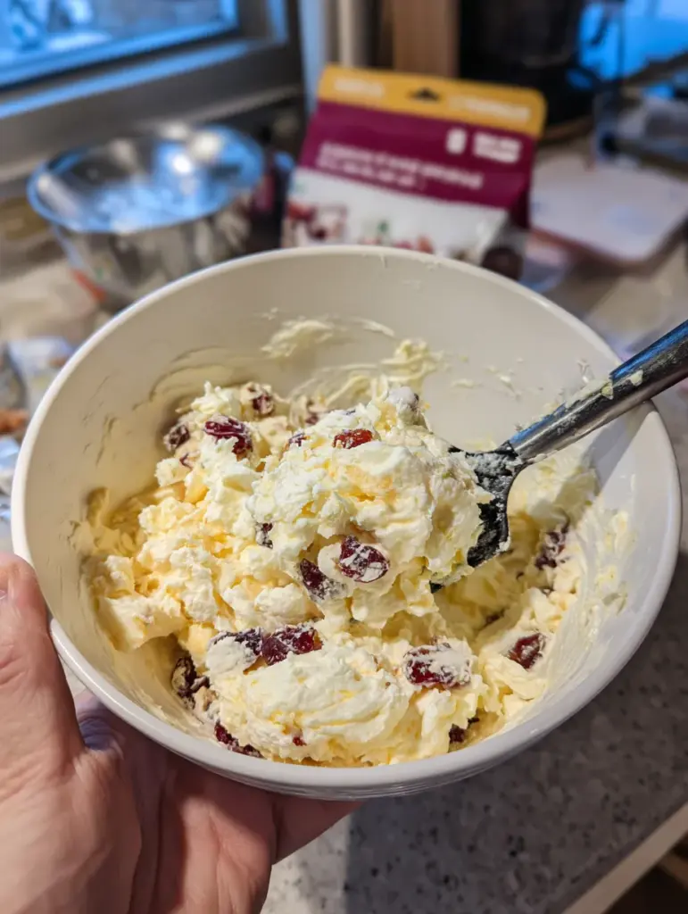 Stir in chopped cranberries, powdered sugar, vanilla extract, salt, and cinnamon (if using). Mix everything until evenly combined.