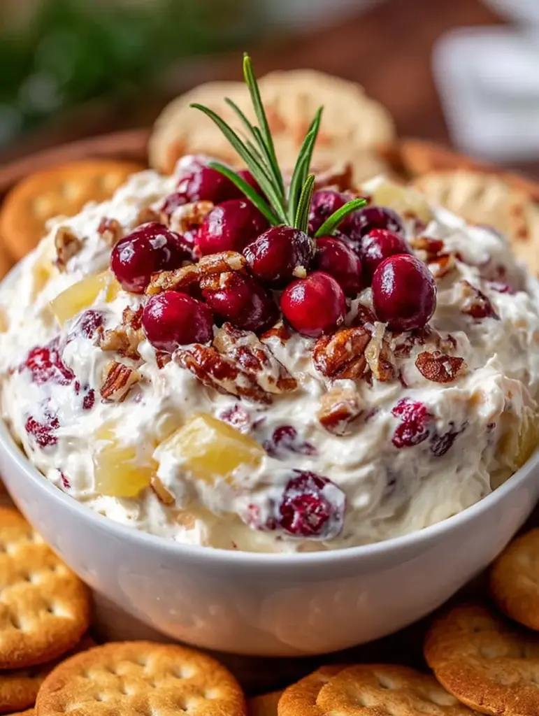 🍍✨ A creamy, fruity, festive dip bursting with sweet pineapple, tangy cranberries, and silky cream cheese. Perfect for holiday gatherings and delicious with cookies, crackers, or fresh fruit! 🎄💖