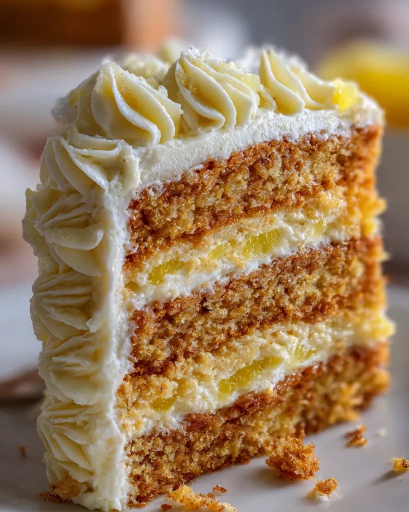 🍍 A soft, golden cake layered with sweet pineapple filling and dreamy cream cheese frosting! ✨ Each bite is like a tropical getaway on a plate. Perfect for celebrations or when you’re craving something extra special. 💛🍰
