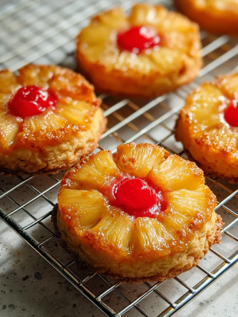 You can serve these cookies as-is, or for the full “upside-down” effect, carefully flip them once cooled slightly. The golden brown sugar and pineapple topping will glisten beautifully on top.