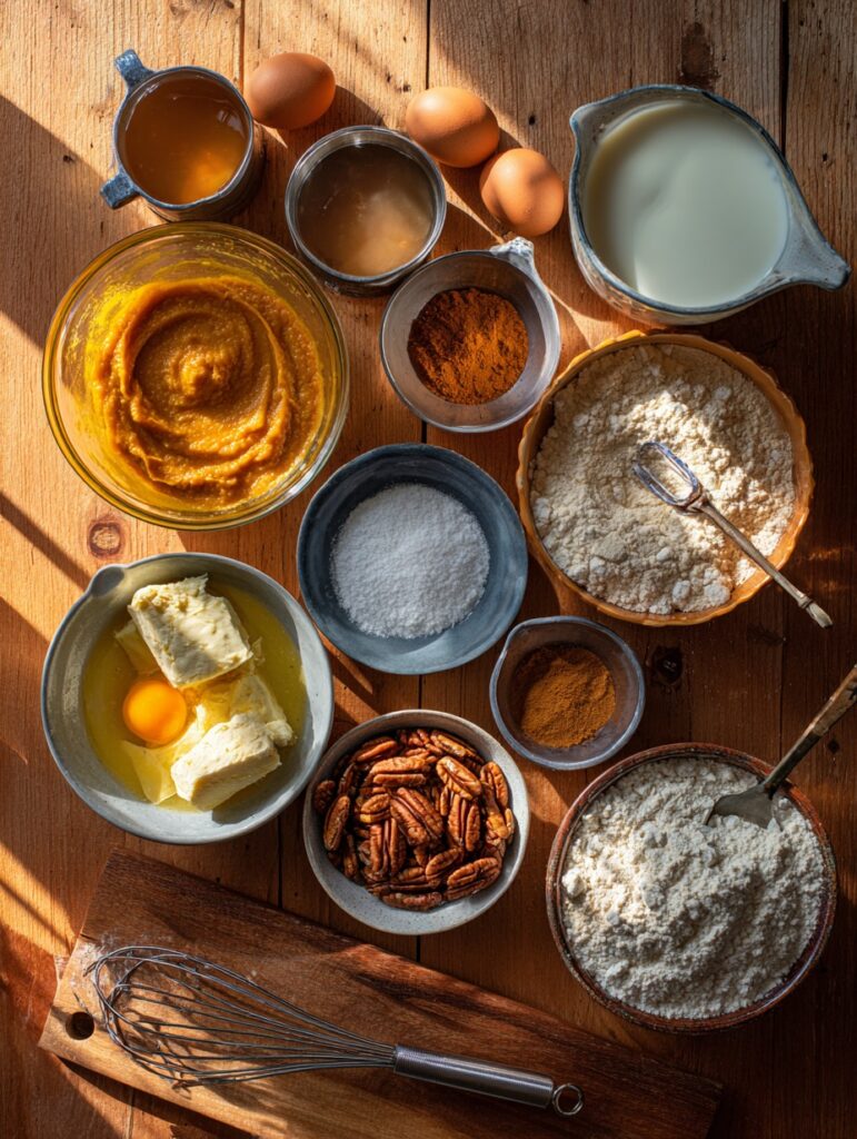 You’ll use 3 large eggs and 1 cup of granulated sugar to bring structure and sweetness to your filling. The eggs help the pumpkin mixture set perfectly while the sugar enhances the warm, earthy pumpkin flavor.