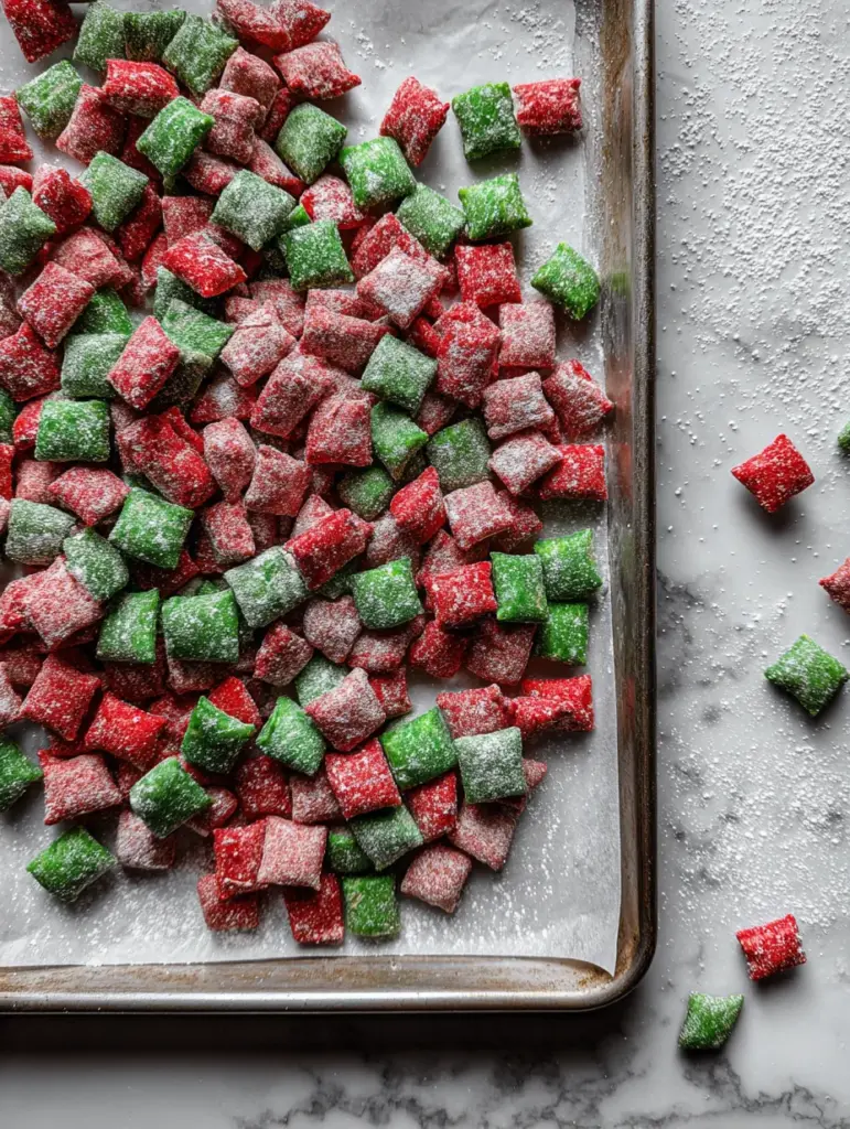 Once all batches are set, gently mix the red, green, and white pieces together in a large bowl for a festive holiday blend. ⏱️ 1 minute 🎄