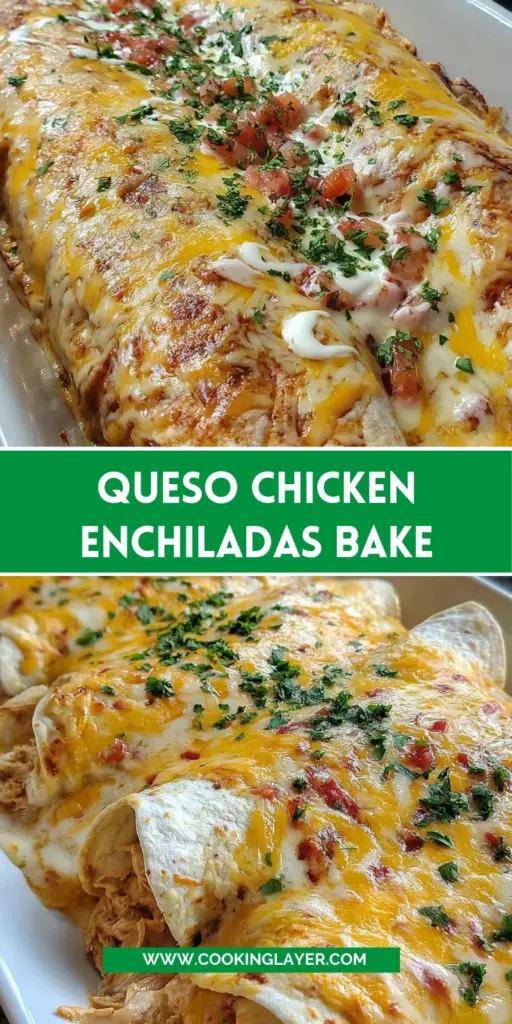 This Queso Chicken Enchiladas Bake offers a delightful balance of simplicity and flavor. In just about 40 minutes, you can whip up a comforting dish that pleases even the pickiest of eaters. The rich, creamy texture of the cheese sauce paired with savory chicken creates a mouthwatering experience. Plus, it’s a one-pan wonder, making cleanup a breeze. Trust me; you’ll want this recipe in your weeknight rotation!