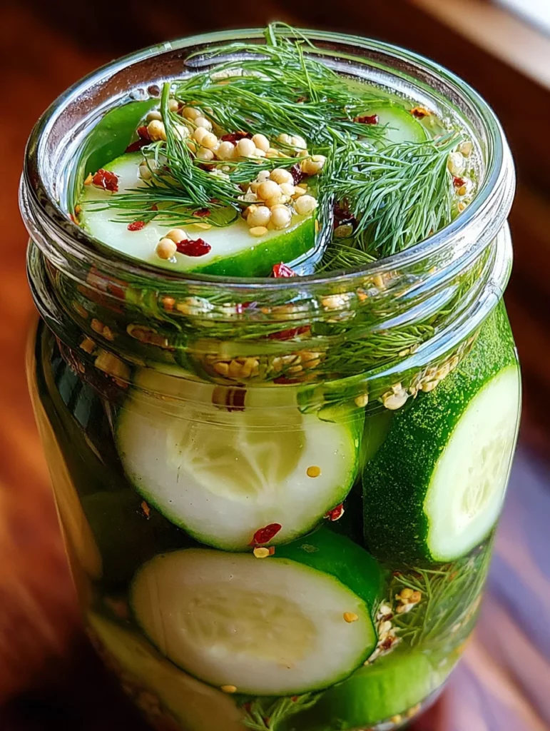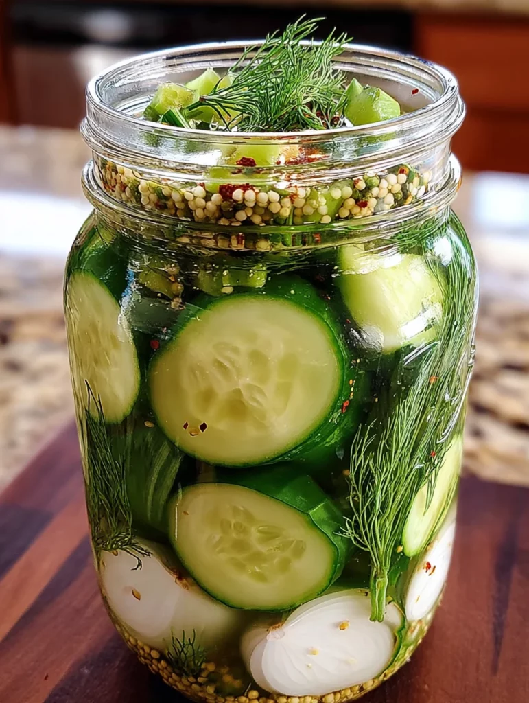 Quick Refrigerator Pickles are a simple and delicious way to enjoy fresh cucumbers with a tangy, sweet, and slightly spicy flavor.