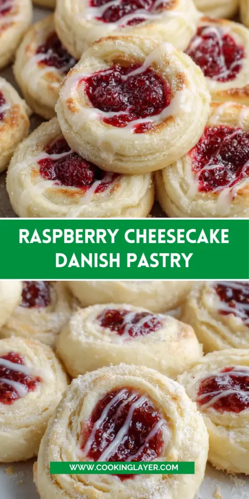 A delicious Raspberry Cheesecake Danish Pastry that combines the richness of cheesecake with the fruity tang of raspberries, all wrapped in a flaky Danish dough.