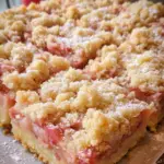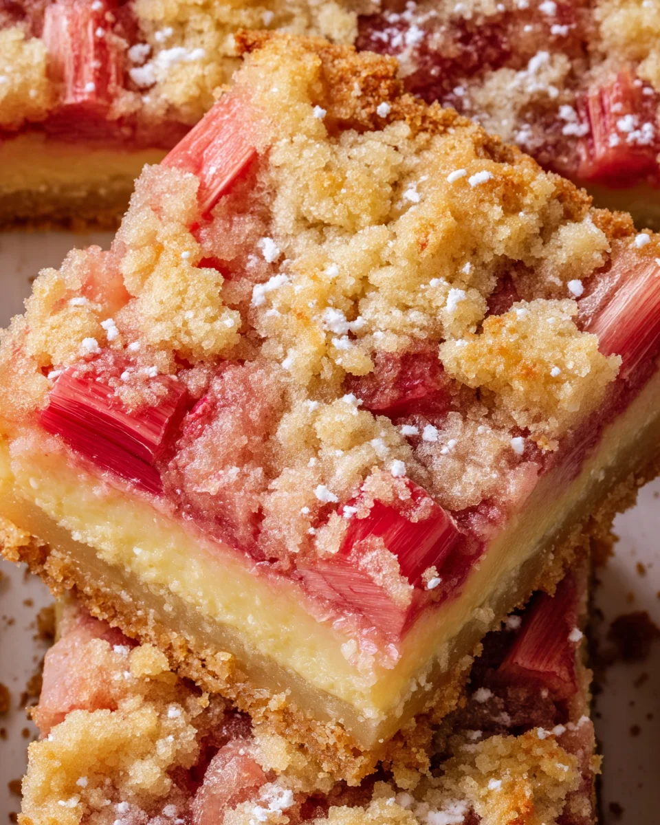 Rhubarb Custard Bars are a delightful dessert featuring a tangy rhubarb topping layered with a creamy custard on a crisp crust.
