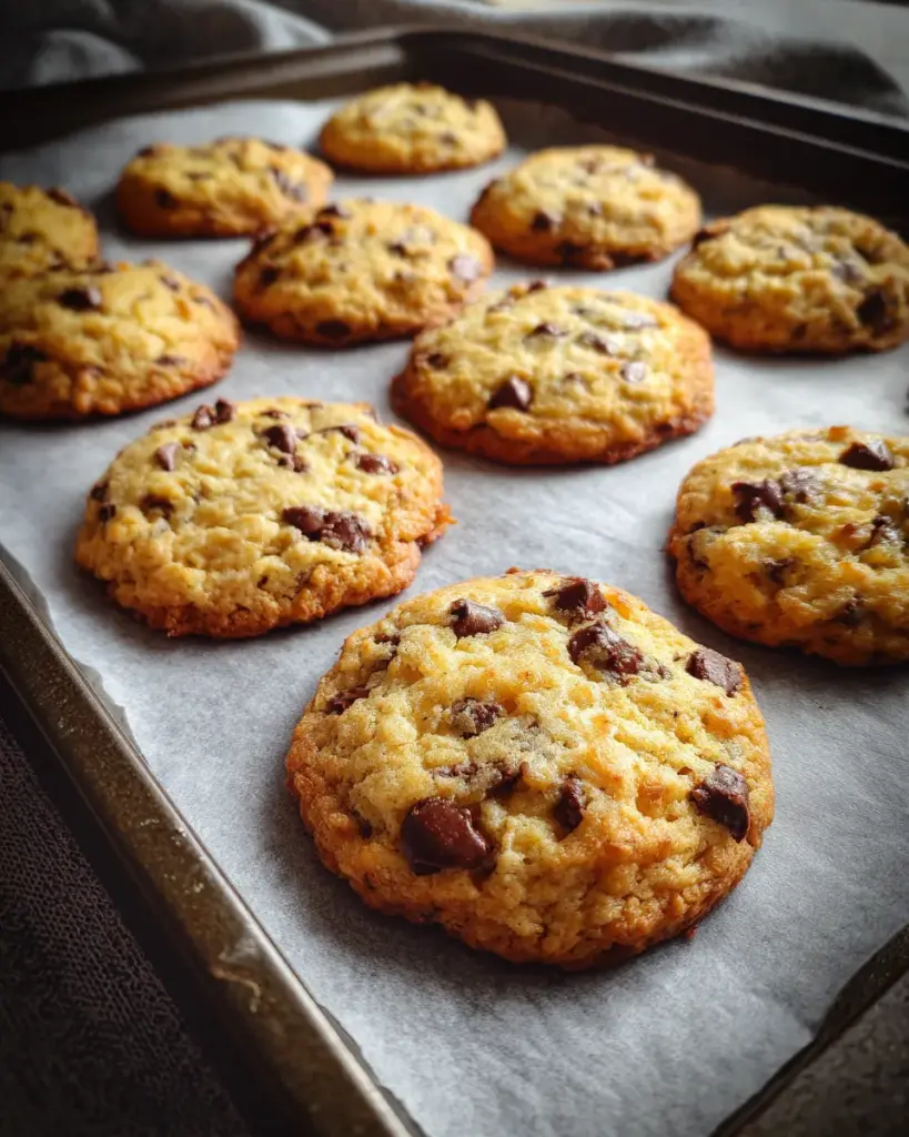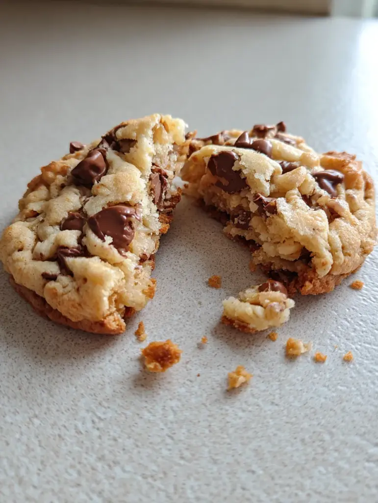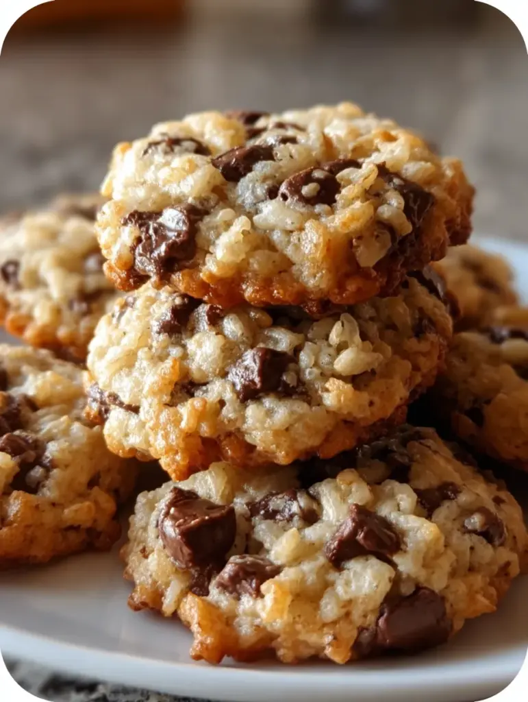 At first glance, they look like classic bakery-style chocolate chip cookies—thick, golden, slightly craggy, and stacked high, just like the image you see. But the magic happens when you bite in. The edges give a gentle crisp, the center melts into soft, chewy goodness, and then—surprise—there’s that subtle, satisfying crunch from Rice Krispies tucked into every bite.