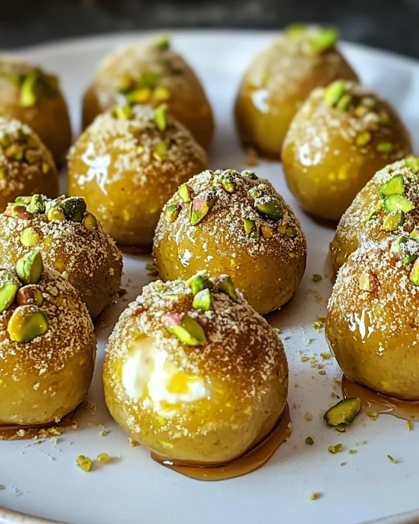 Ricotta pistachio honey bites are a delightful treat combining creamy ricotta cheese, crunchy pistachios, and a drizzle of honey.