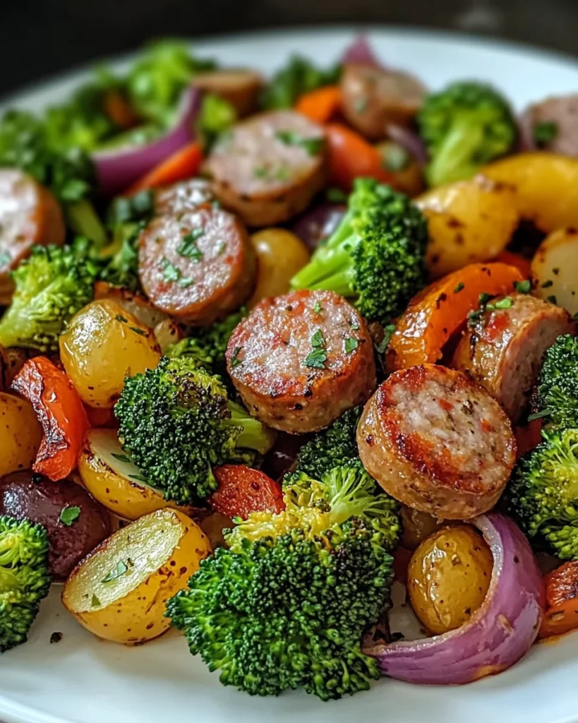 A flavorful and easy-to-make dish featuring roasted vegetables and chicken sausage, perfect for a weeknight dinner.