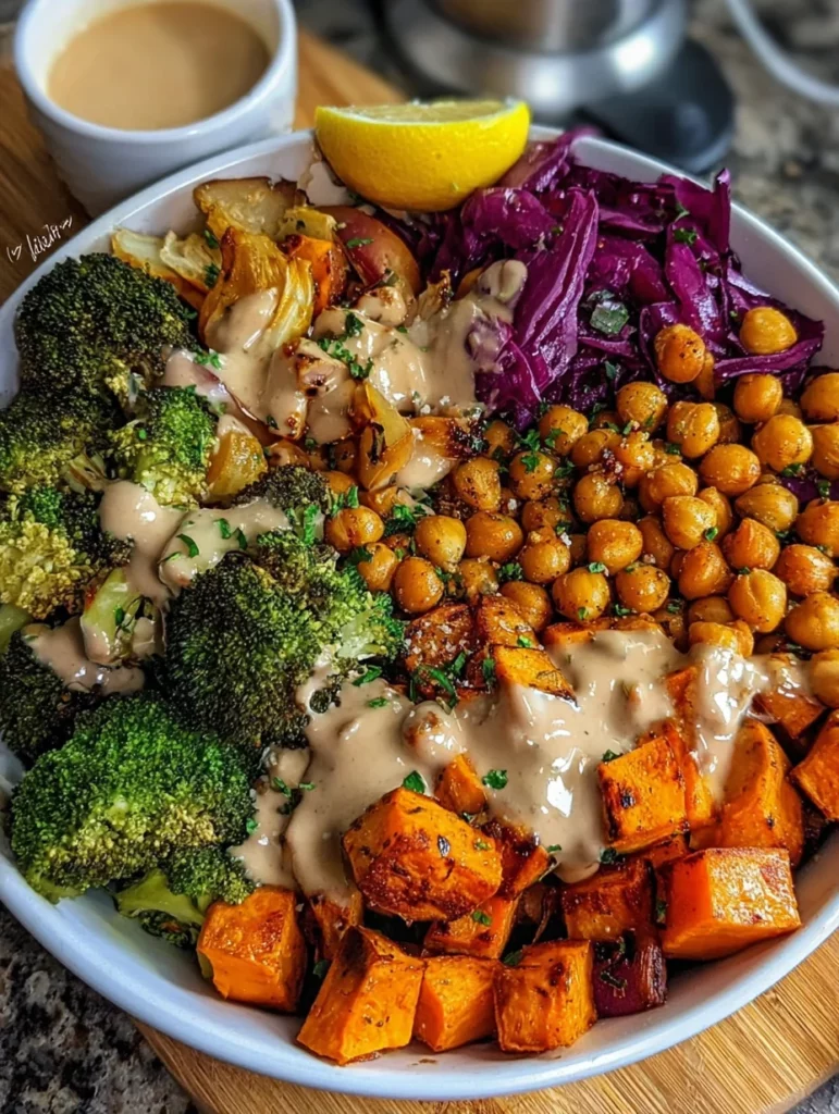Why You’ll Love This Roasted Veggie & Chickpea Bowls with Maple Dijon Tahini Dressing