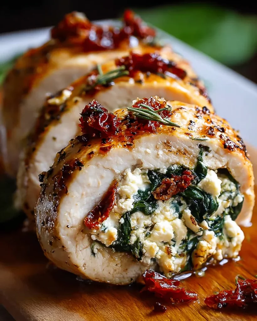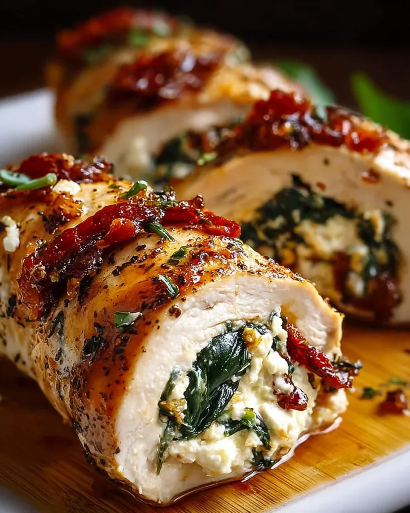Rolled Up Chicken with Feta, Spinach, and Sun-Dried Tomatoes is a delicious and visually appealing dish that’s perfect for dinner.