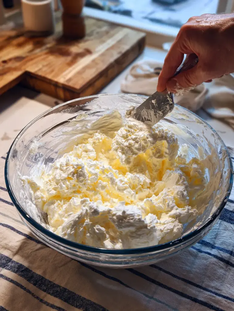 The texture should be thick but spreadable—not runny or overly stiff. If it’s too hard to mix, let it sit at room temperature for 10 minutes.
