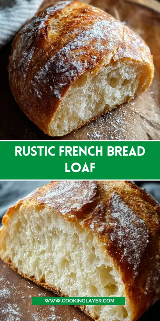 Baking this Rustic French Bread Loaf isn’t just about producing an incredible loaf; it’s about the joy and warmth it brings into your home. There’s something satisfying about making bread from scratch, a ritual that wraps your kitchen in delightful aromas. This simple yet rewarding recipe is a chance to slow down and savor the moment amid the busyness of life. Whether you’re sharing it with family or indulging in a slice alone, it’s a slice of happiness you can create. So, gather your loved ones, and let the journey of baking this bread together turn into cherished memories.