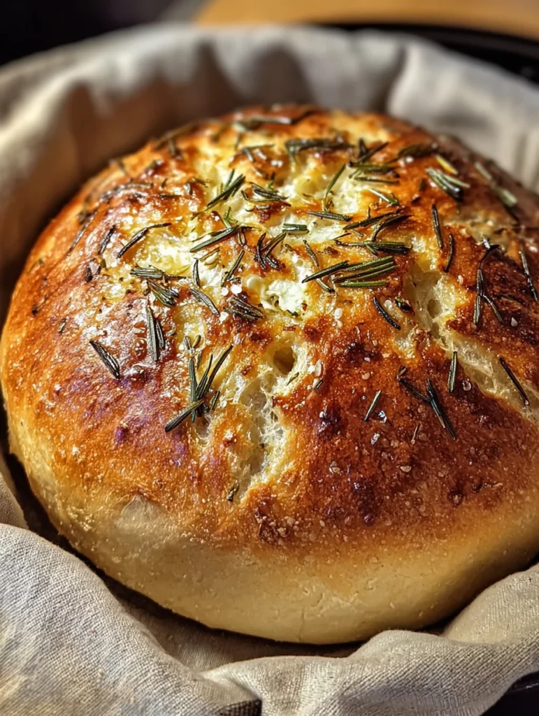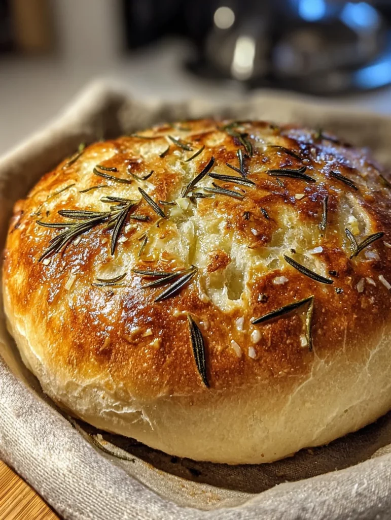 A delicious and easy recipe for Rustic No-Knead Rosemary Garlic Bread, perfect for any occasion.