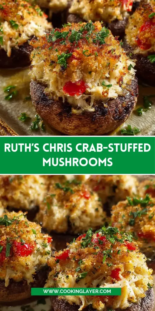 Delicious crab-stuffed mushrooms, a delightful appetizer inspired by Ruth’s Chris.