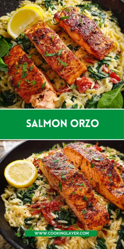 A creamy and flavorful salmon orzo dish that combines seared salmon fillets with a rich spinach orzo pasta.