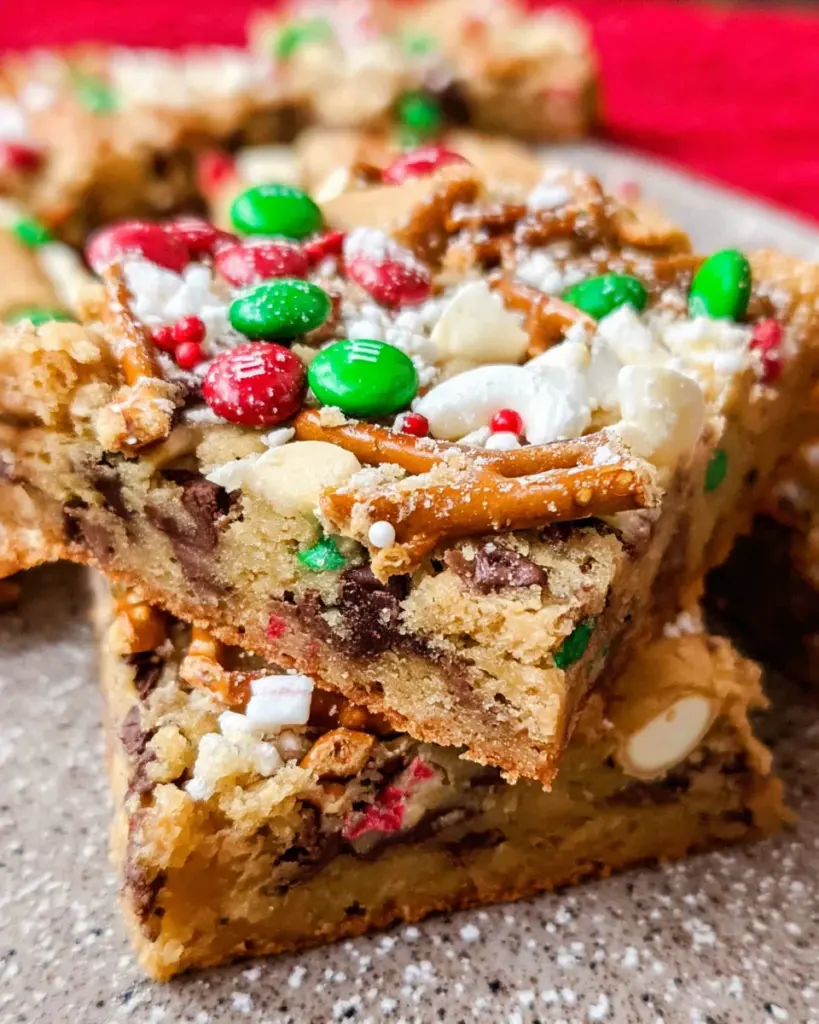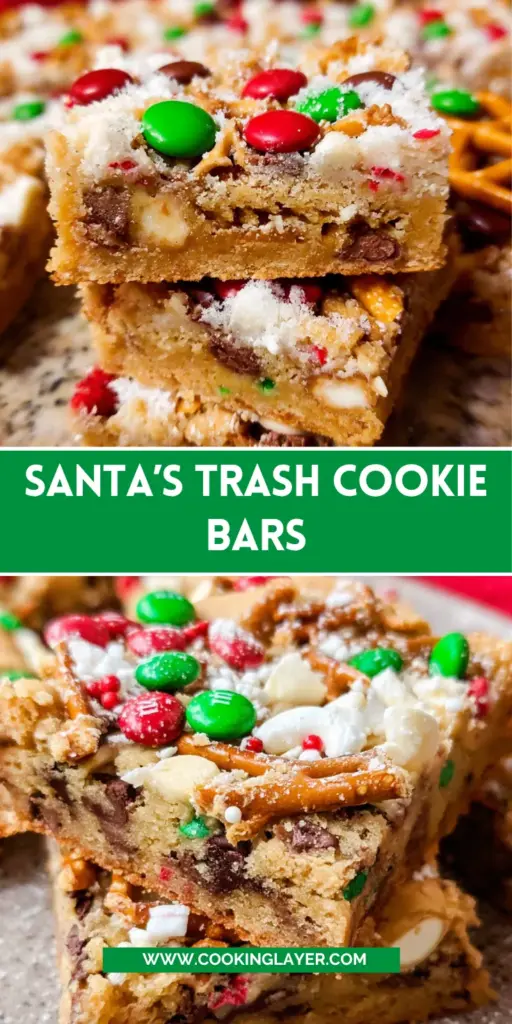 Santa’s Trash Cookie Bars are a festive treat that combines sweet and salty flavors, perfect for the holiday season.