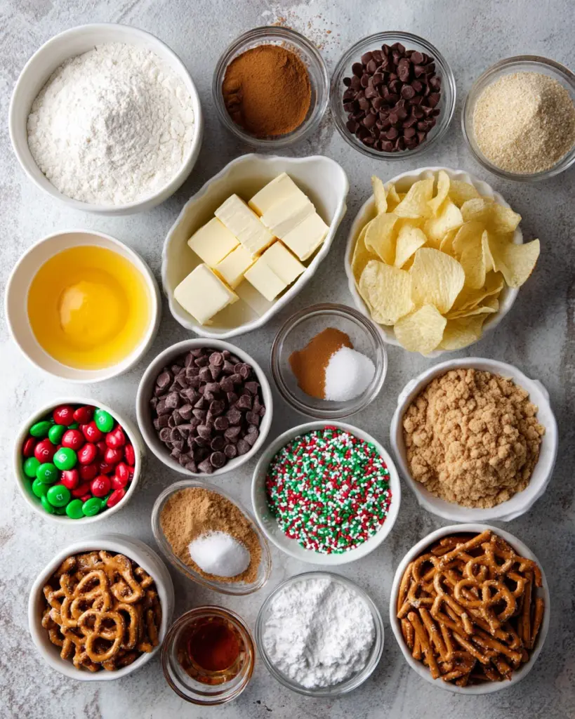 Let’s dive into the delightful ingredients that make Santa’s Trash Cookie Bars a festive favorite! Each component plays a role, contributing unique flavors and textures.