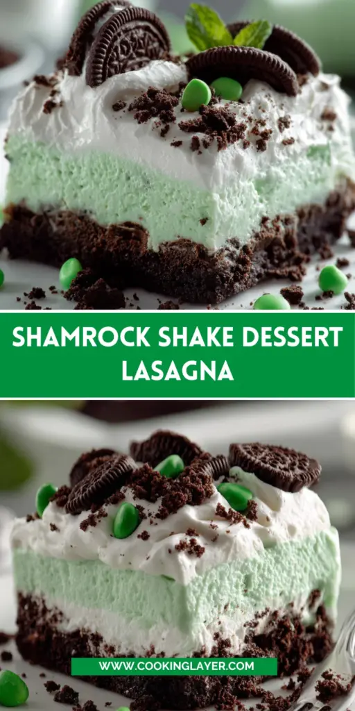 A delightful dessert lasagna inspired by the popular Shamrock Shake, perfect for St. Patrick’s Day celebrations.