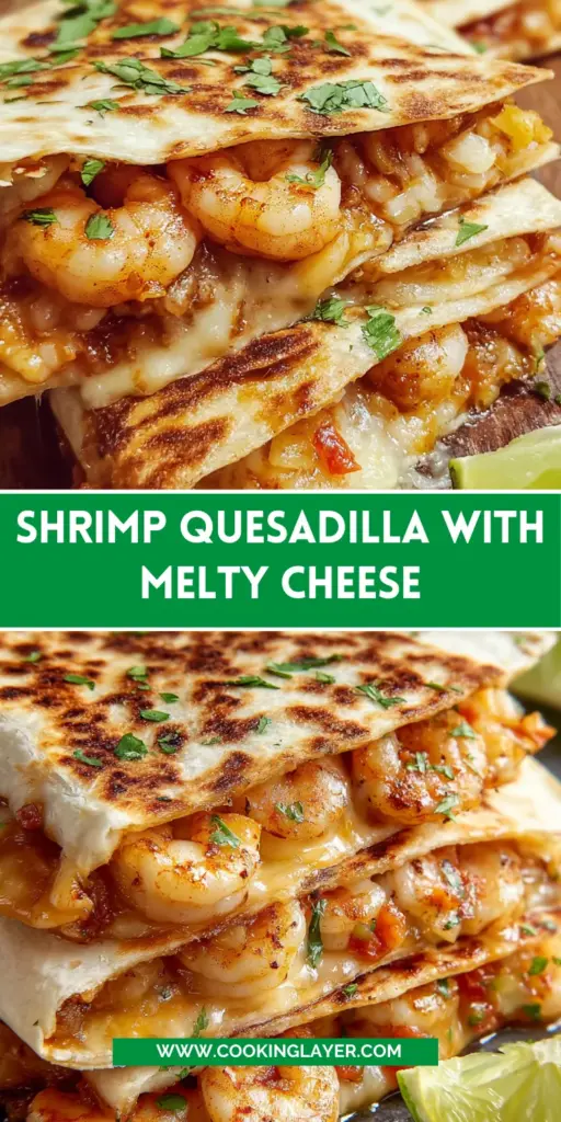 Shrimp Quesadilla with Melty Cheese is a delicious dish filled with sautéed shrimp, cheese, and vegetables, all encased in a crispy tortilla.