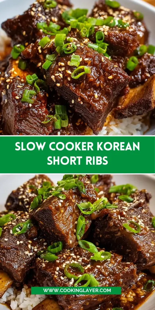 Slow Cooker Korean Short Ribs are tender, flavorful beef ribs cooked in a savory and slightly spicy marinade, perfect for a hearty meal.