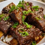 Once cooked, carefully remove the ribs and place them on a serving platter. Tent them with foil to keep warm. If you wish, strain the cooking liquid to discard any solids, then reduce it in a saucepan for a glossy sauce. Serve the ribs hot, spooning that savory sauce over them. Garnish with chopped green onions and toasted sesame seeds for flair! These ribs shine on steamed rice, noodles, or mashed potatoes!