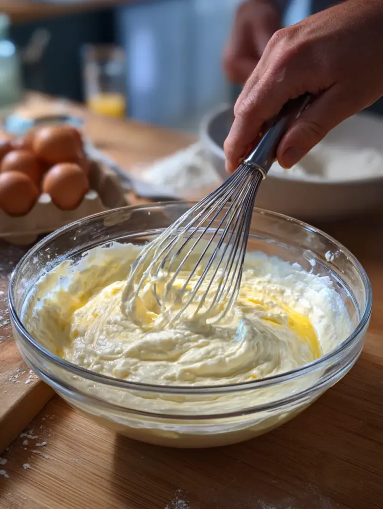 In a large bowl, whisk together the ricotta cheese, eggs, granulated sugar, and vanilla extract until smooth and creamy. 😍