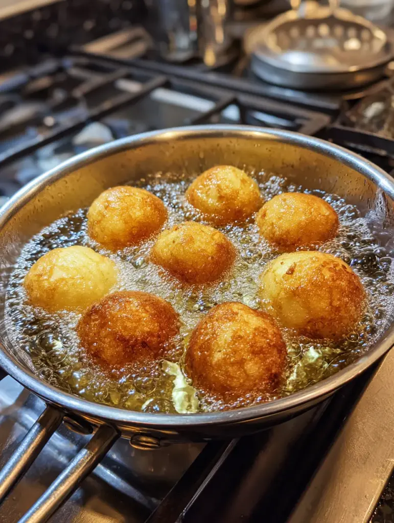 ⏱ Duration: 8–10 minutesDrop small spoonfuls of batter into the hot oil, frying in batches until puffed, round, and deep golden on all sides. 😋