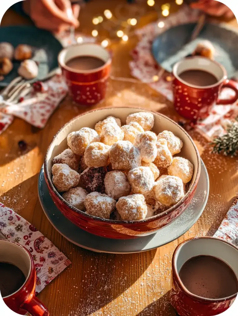 These delightful little golden puffs are a Christmas miracle in miniature form: crispy on the outside, meltingly soft on the inside, and covered in a glistening coat of snowy sugar that makes them look like they’ve been touched by the North Pole itself. Think of them as doughnut holes that went to a holiday party — dressed to the nines in sparkling sweetness and bringing joy to every table they land on.