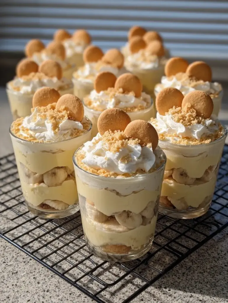 Second, the layering is intentional. Just like in the image, you can clearly see the bananas, pudding, and wafers stacked beautifully in each cup. This isn’t a messy mix—it’s a thoughtfully layered dessert that looks as good as it tastes.