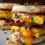 It’s assembly time, and the anticipation is real! Begin by toasting your English muffins until they’re golden brown and delicious. Spread a generous amount of your homemade chipotle mayo on each cut side—we want that fiery flavor! On the bottom half of each muffin, layer a slice of sharp cheddar cheese, followed by that perfectly cooked egg. If you’re using bacon or sausage patties, lay those on next for extra indulgence. And don’t forget optional extras—add slices of creamy avocado or a handful of baby spinach for a fresh touch. Once stacked, place the top half of the muffin on each sandwich and voila! You’re ready to dig into a breakfast that screams flavor and satisfaction!