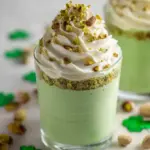 Why this works: it’s fast, festive, and actually tastes like pistachios — not just food coloring and sugar. The pistachio cream gives the pudding a real nutty flavor and silky texture. And honestly, it looks adorable in little clear cups for a St. Patrick’s Day table.
