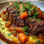 Once the cooking time is up, remove the pot from the heat. Place the roast onto a cutting board and let it rest for 10 minutes. Then, slice or shred the beef using two forks—the texture should feel like velvet! Return the shredded beef to the pot to soak up that flavorful sauce. Serve this delicious Stracotto over creamy polenta, fluffy mashed potatoes, or alongside thick slices of crusty bread. Don’t forget to finish with a sprinkle of fresh parsley and some grated Parmesan for that extra touch!